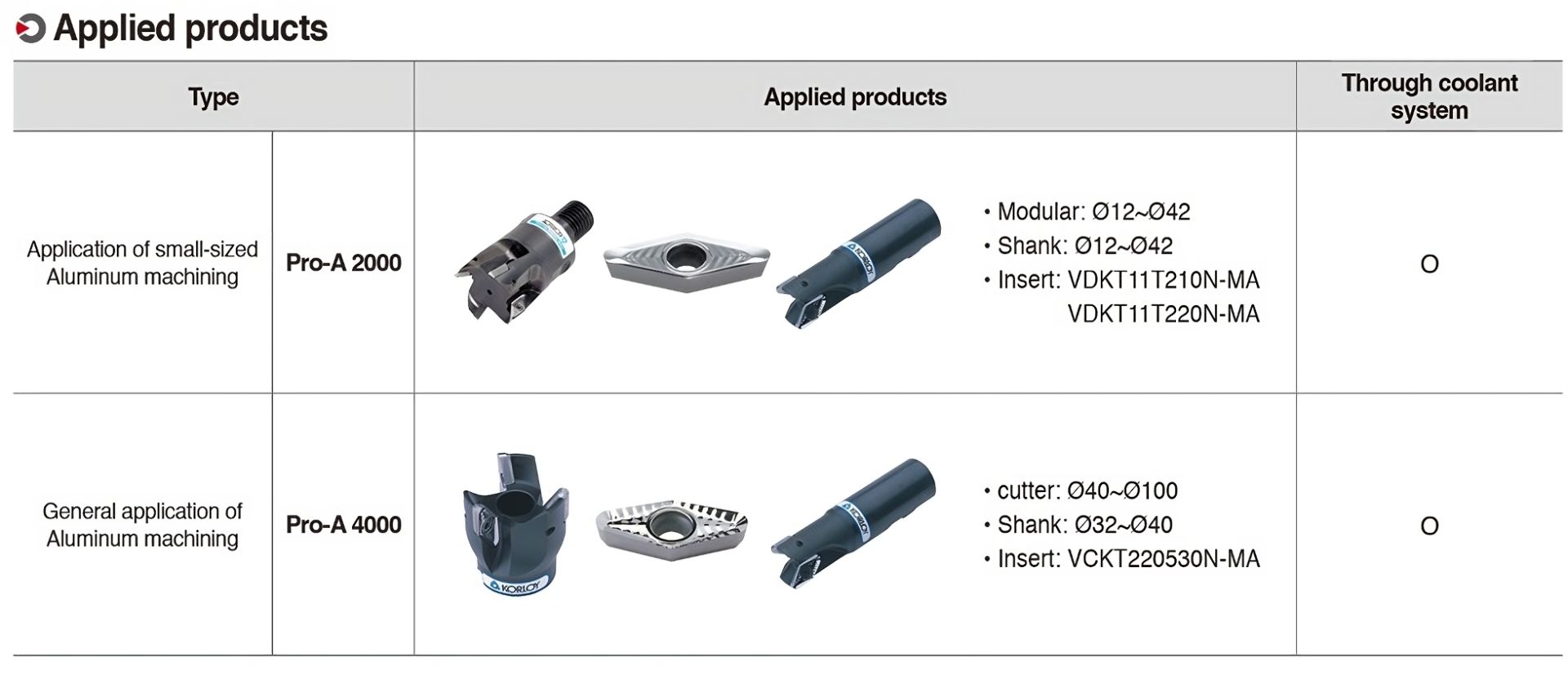 Utensile di fresatura KORLOY per alluminio, gli inserti Pro-A Mill hanno una superficie superiore smerigliata per ottenere una finitura a specchio ed evitare l'adesione del truciolo anche alle alte temperature prodotte dal taglio dell'alluminio. Allo stesso modo, i taglienti della fresa sono stati progettati per una migliore riduzione del truciolo e una bassa resistenza al taglio, che prolungano significativamente la vita dell'utensile e producono finiture superficiali sorprendenti.