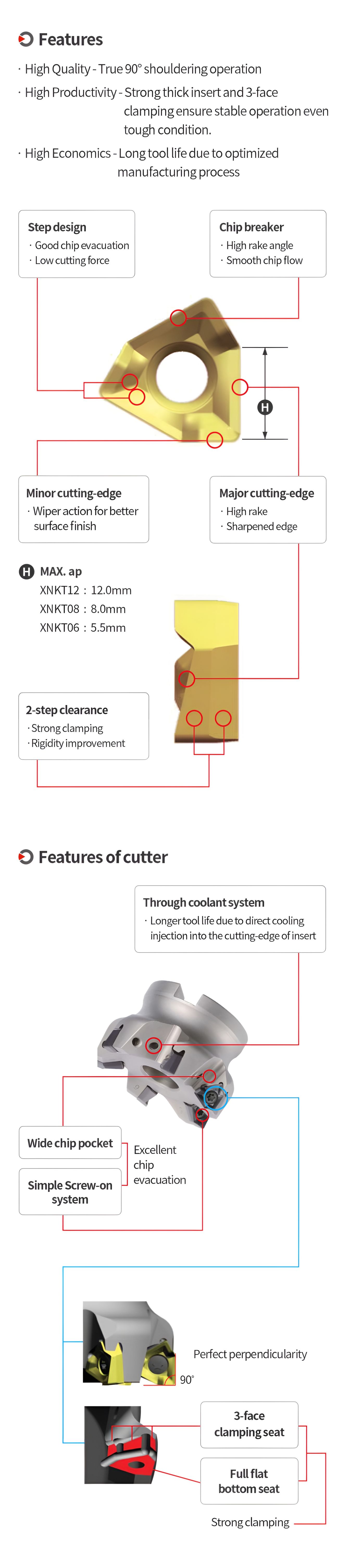 L'utilizzo di un unico utensile per diverse applicazioni richiede non solo un'azione di taglio netta, ma anche un'elevata rigidità e un serraggio stabile. Prestazioni di taglio scadenti portano a rumori e bave eccessive e deteriorano sia la perpendicolarità che la finitura superficiale. Una bassa rigidità e un serraggio instabile causano vibrazioni durante le operazioni, con conseguente scheggiatura o rottura dell'inserto, che riduce la durata dell'utensile.