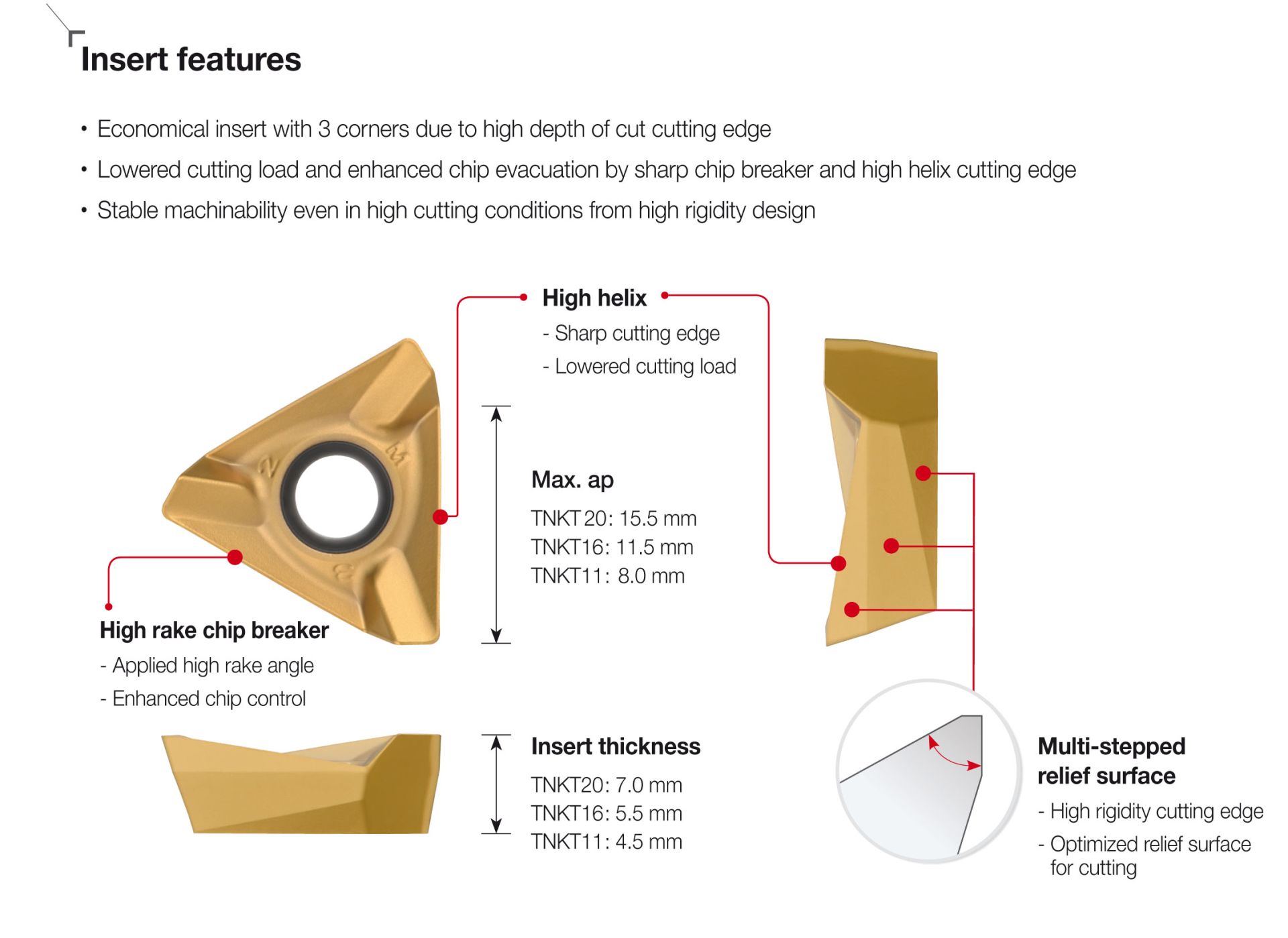 La fresa Triple Mill specializzata nella lavorazione ad alta profondità di taglio e il suo grado ottimizzato applicato a ogni diversa condizione di taglio consentono di ottenere prestazioni eccellenti e di aumentare la produttività del cliente.
